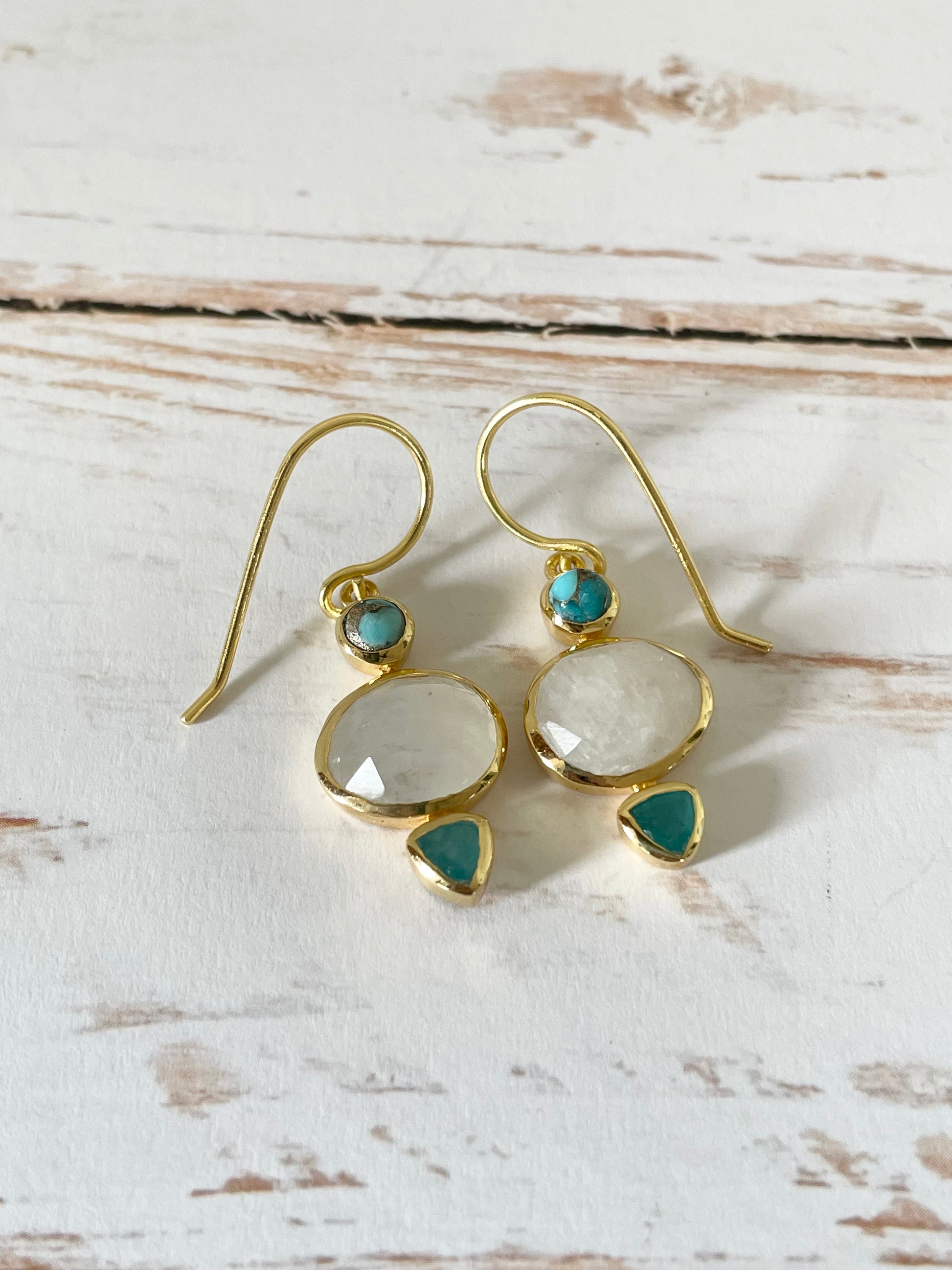 18K Gold Electroplated Dangles ~ Moonstone & Turquoise