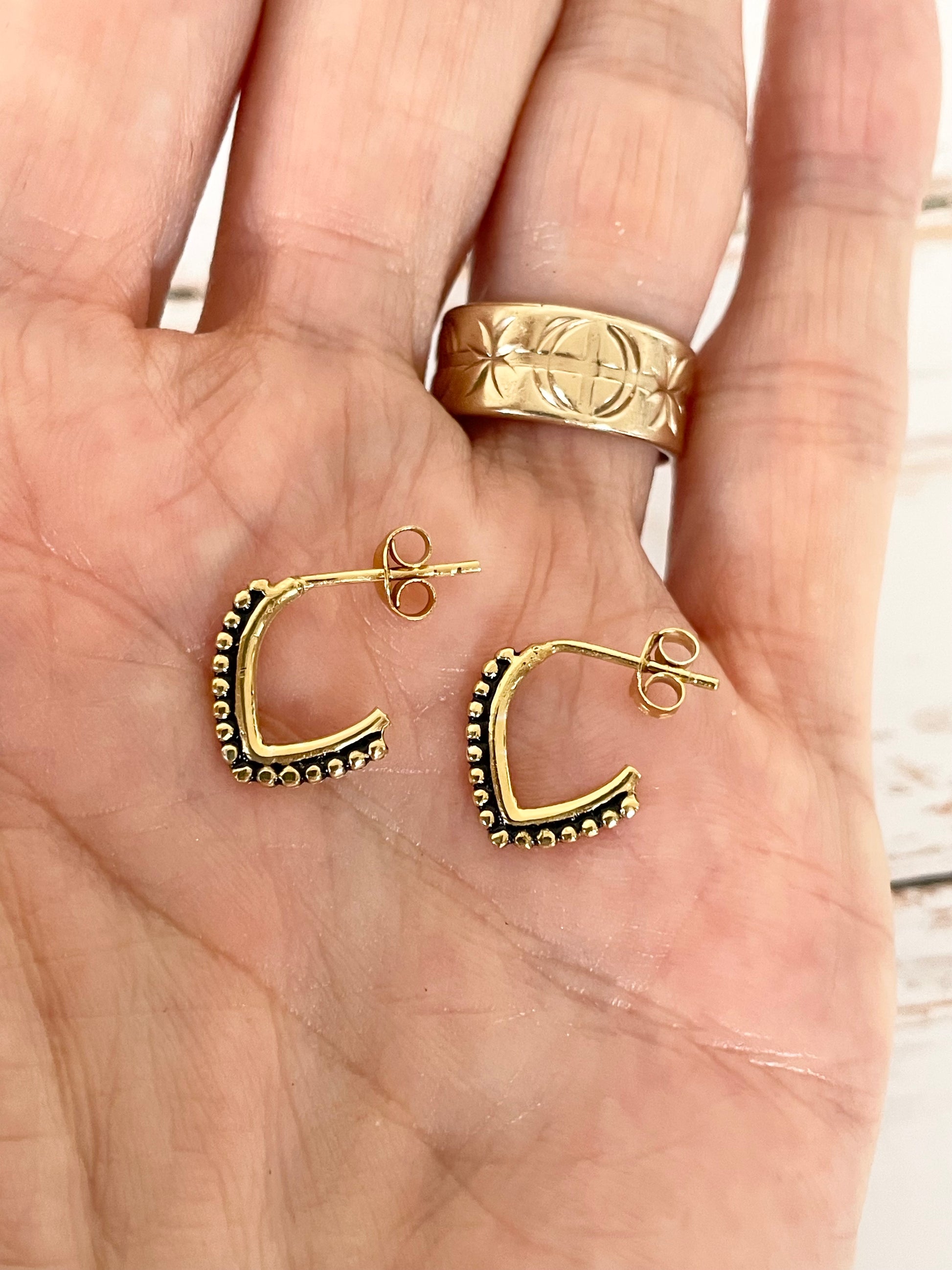 Our gold jewellery features a hypo allergenic electroplated layer over solid sterling silver .925. These pieces are plated with e-coat and a 0.3 to 1 micron of 14-18K yellow gold. This creates a solid finish and will last many years without tarnish, providing you look after it!