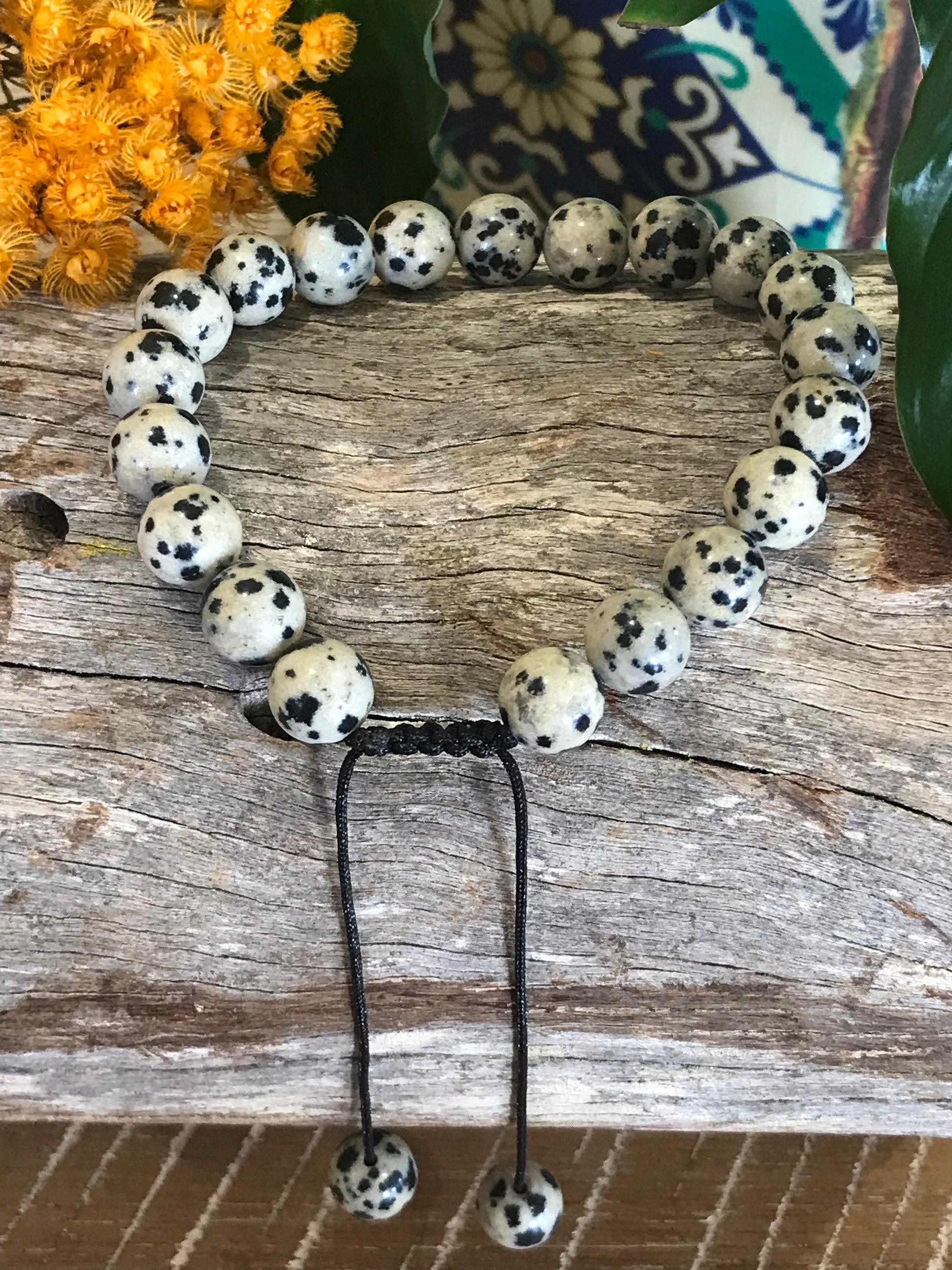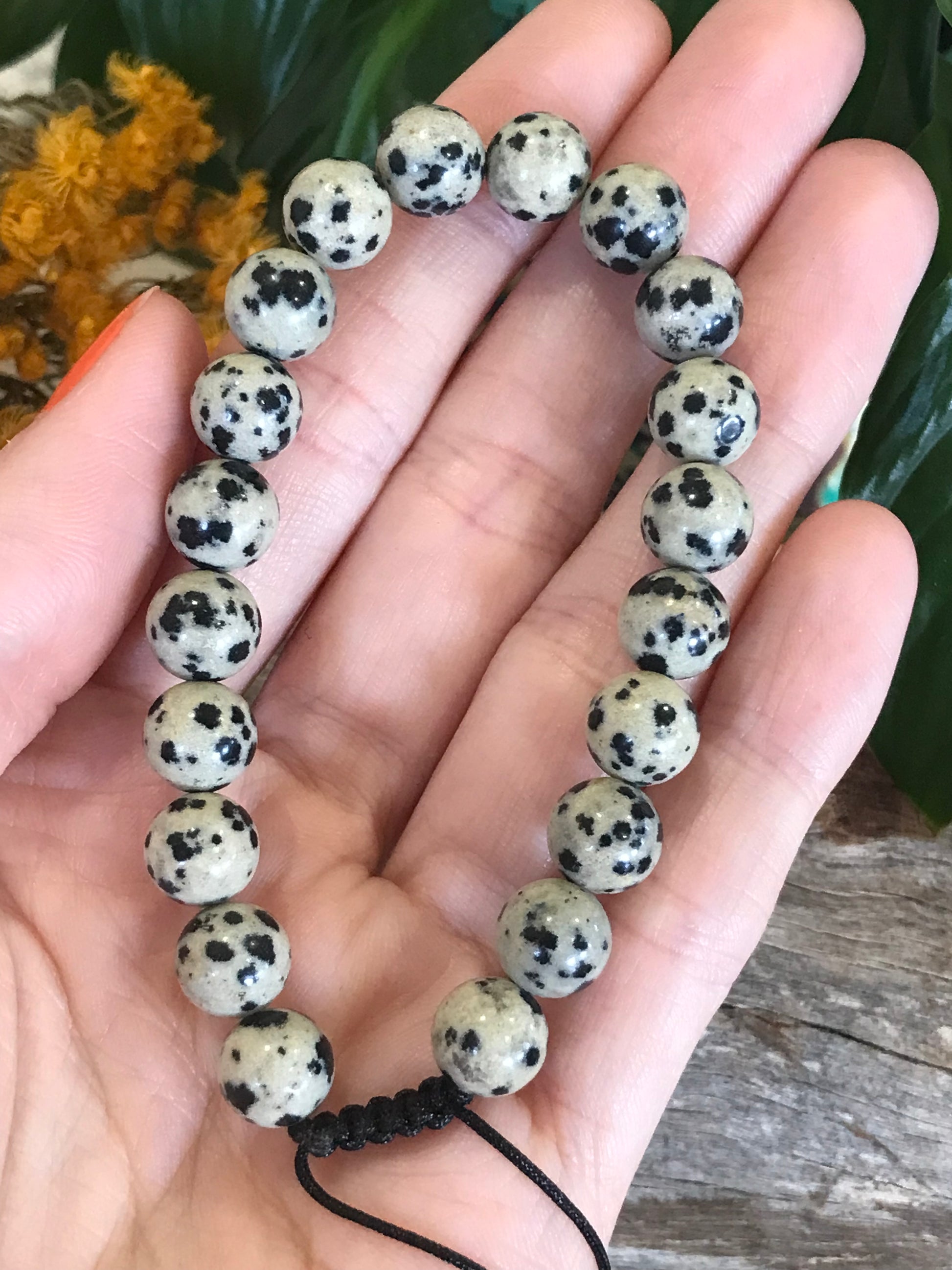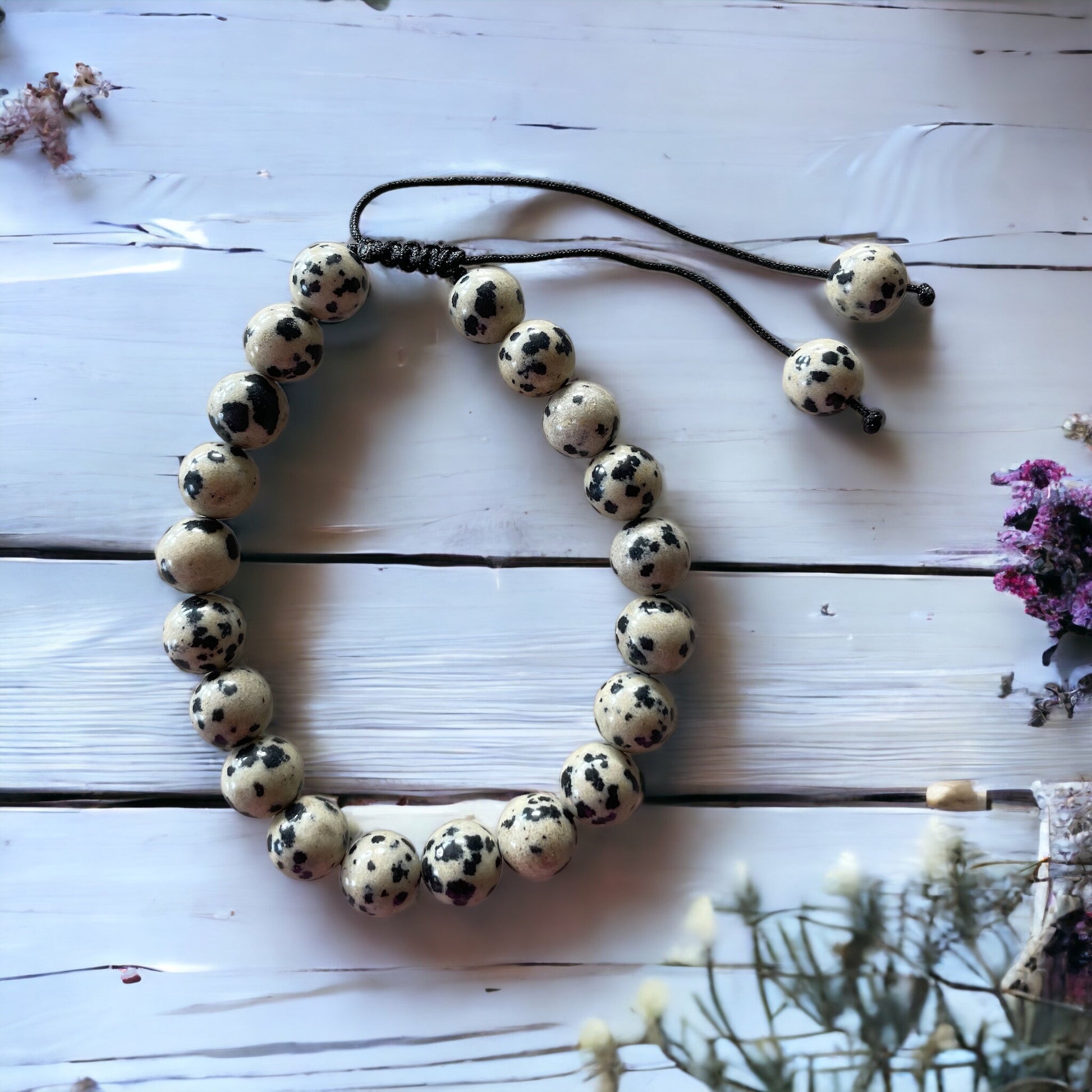 Adjustable Macrame Bracelet ~ Dalmatian Jasper