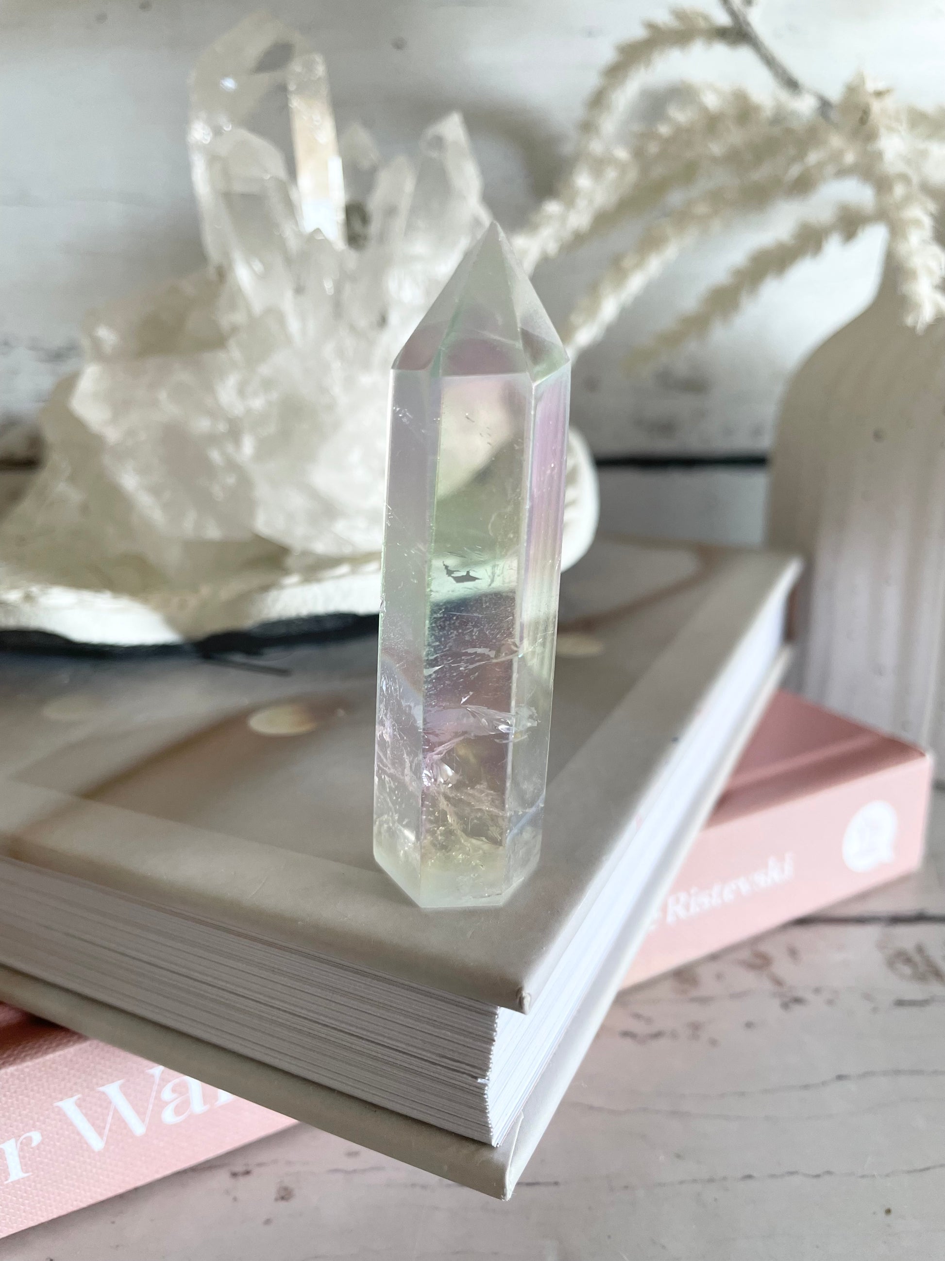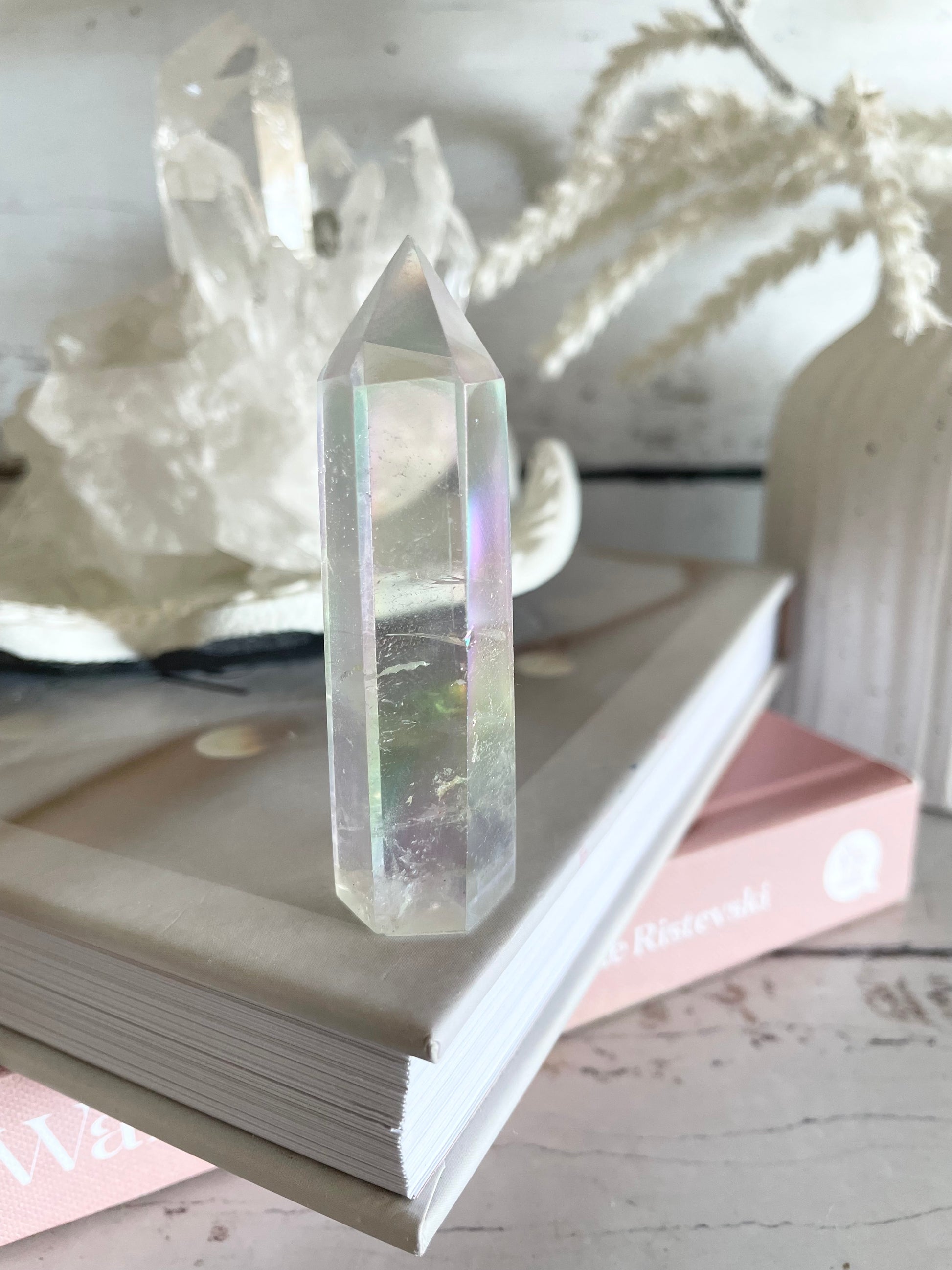 This pretty multi toned Quartz opens and activates our Heart and our Crown for enlightenment and love