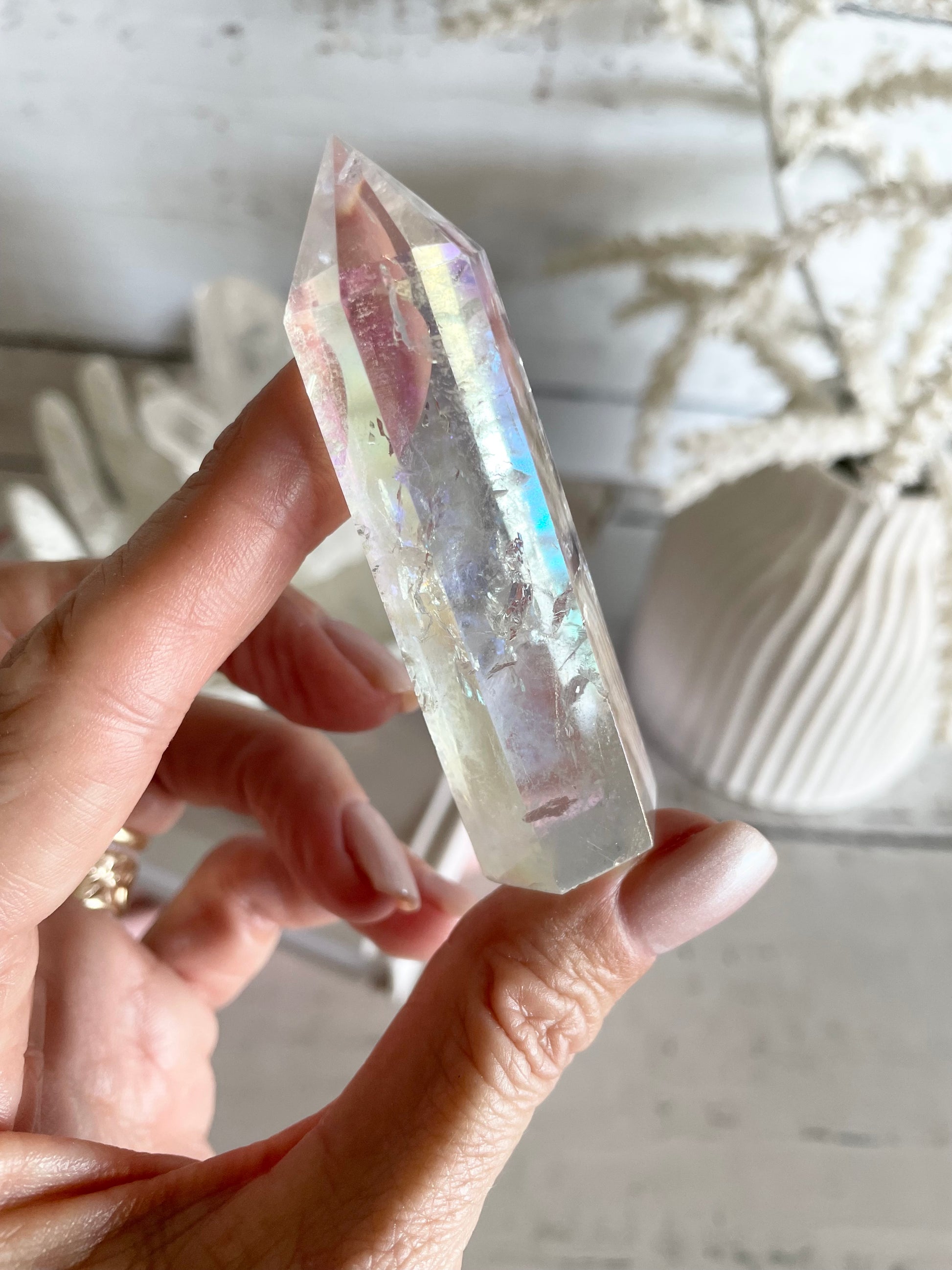 This pretty multi toned Quartz opens and activates our Heart and our Crown for enlightenment and love