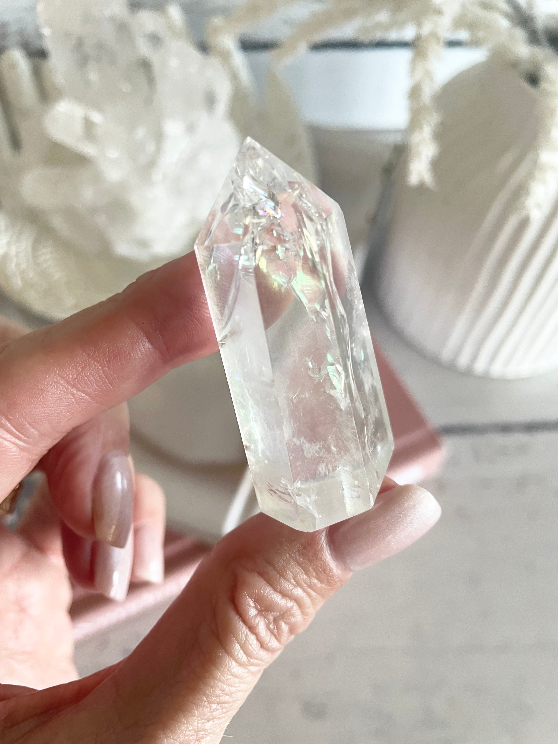 This pretty multi toned Quartz opens and activates our Heart and our Crown for enlightenment and love