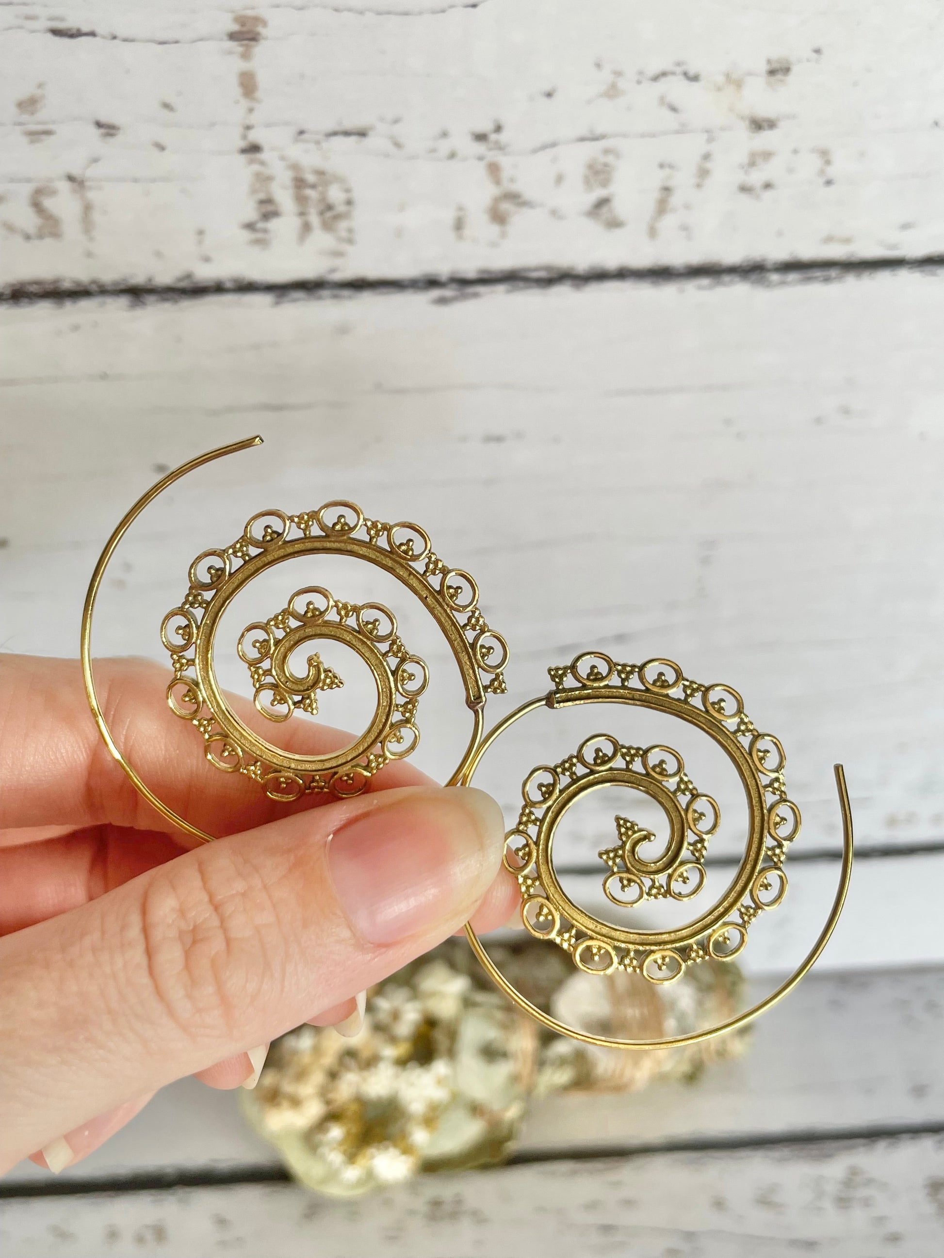 These beautiful bohemian spiral earrings are solid brass. Simply slide them into your ear