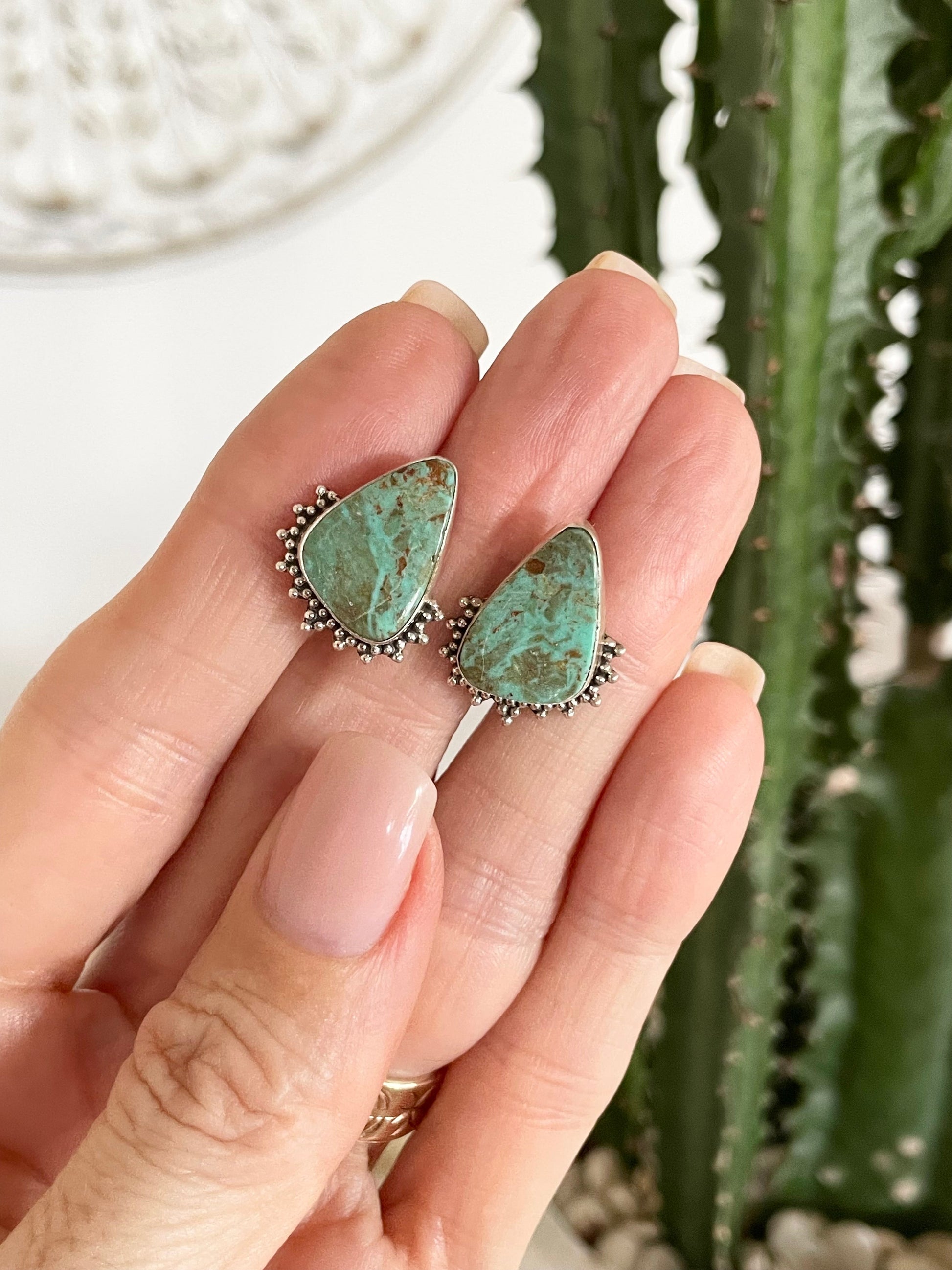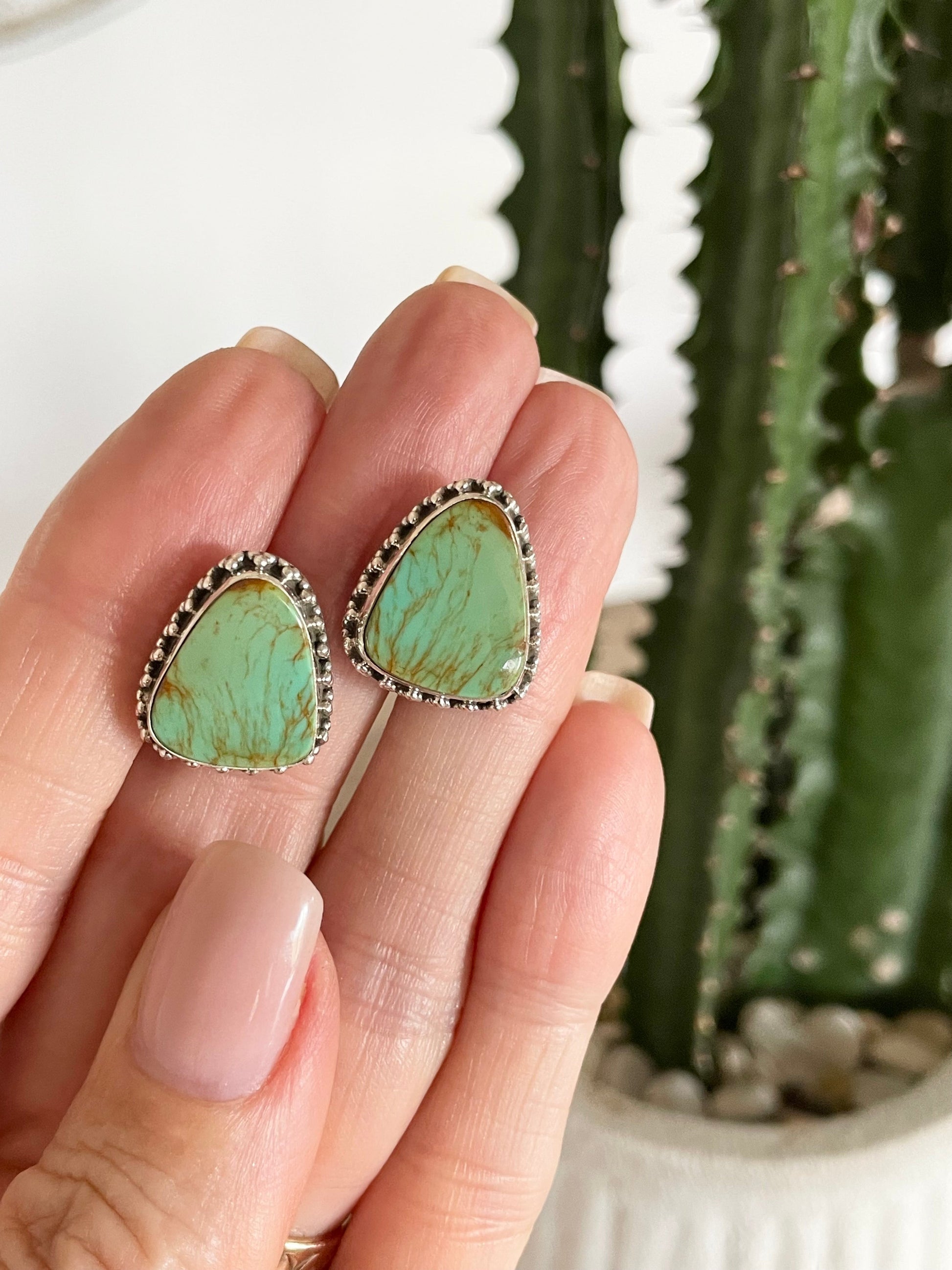 4 x Green Mojave Green Turquoise Studs