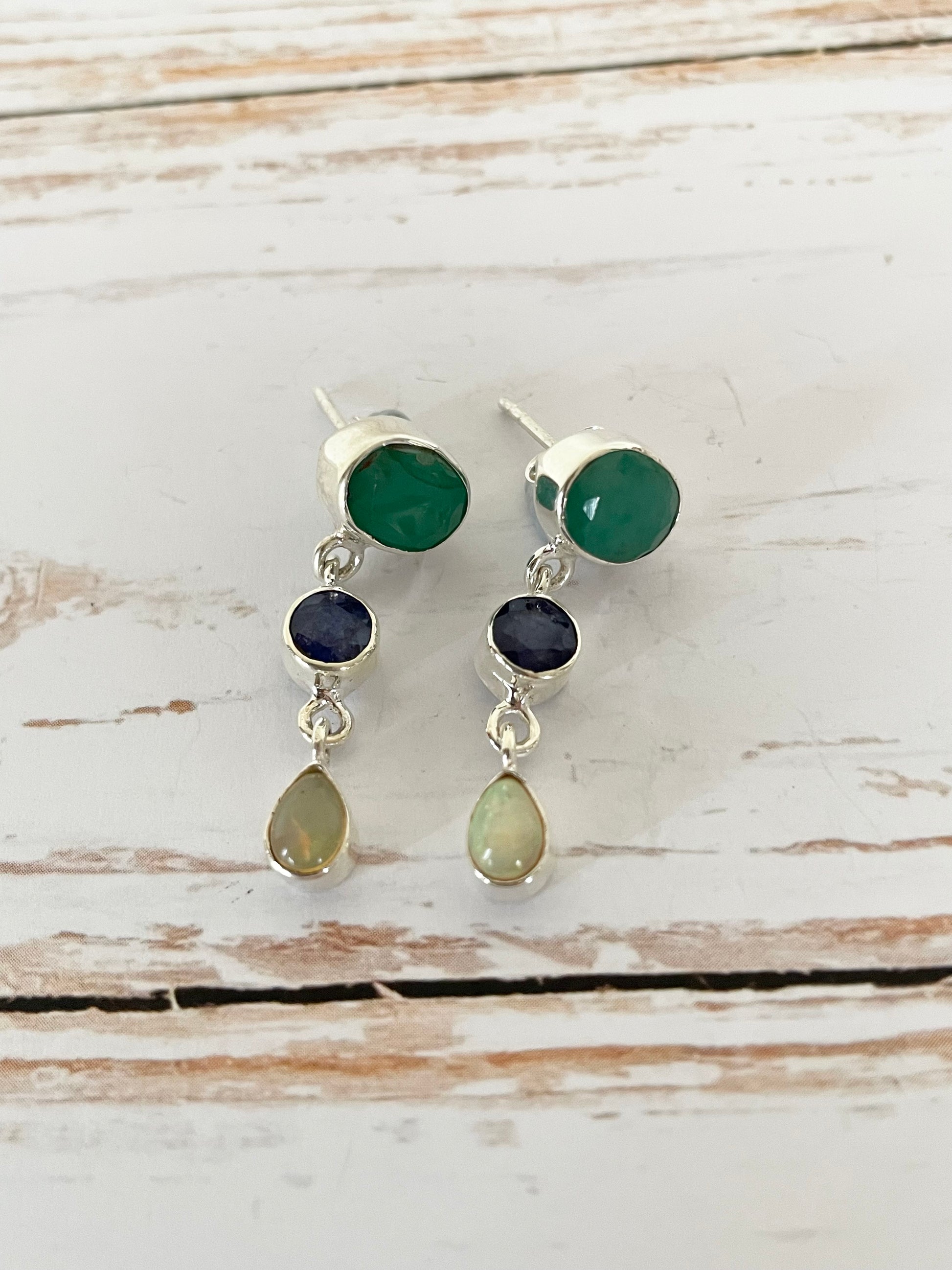 Emerald, Sapphire & Ethiopian Opal Stud dangles