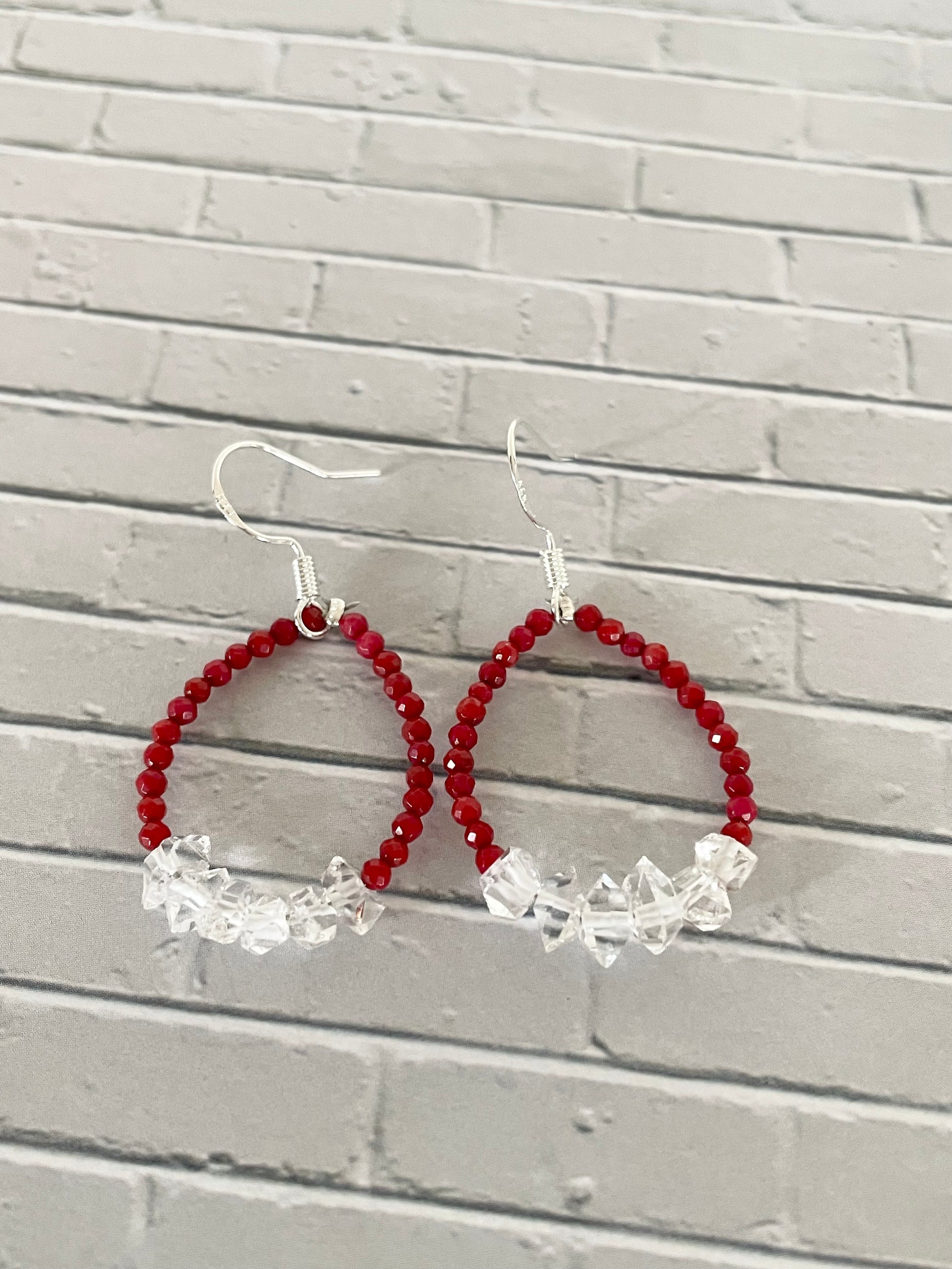 Faceted Red Coral/Herkimer Dangles