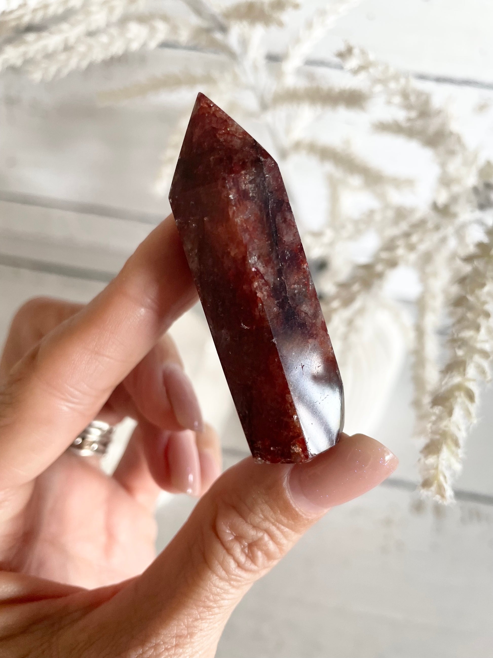 Hematoid or Fire Quartz contains both properties of Clear Quartz and Hematite to allow a fusion of balancing power and white light rays