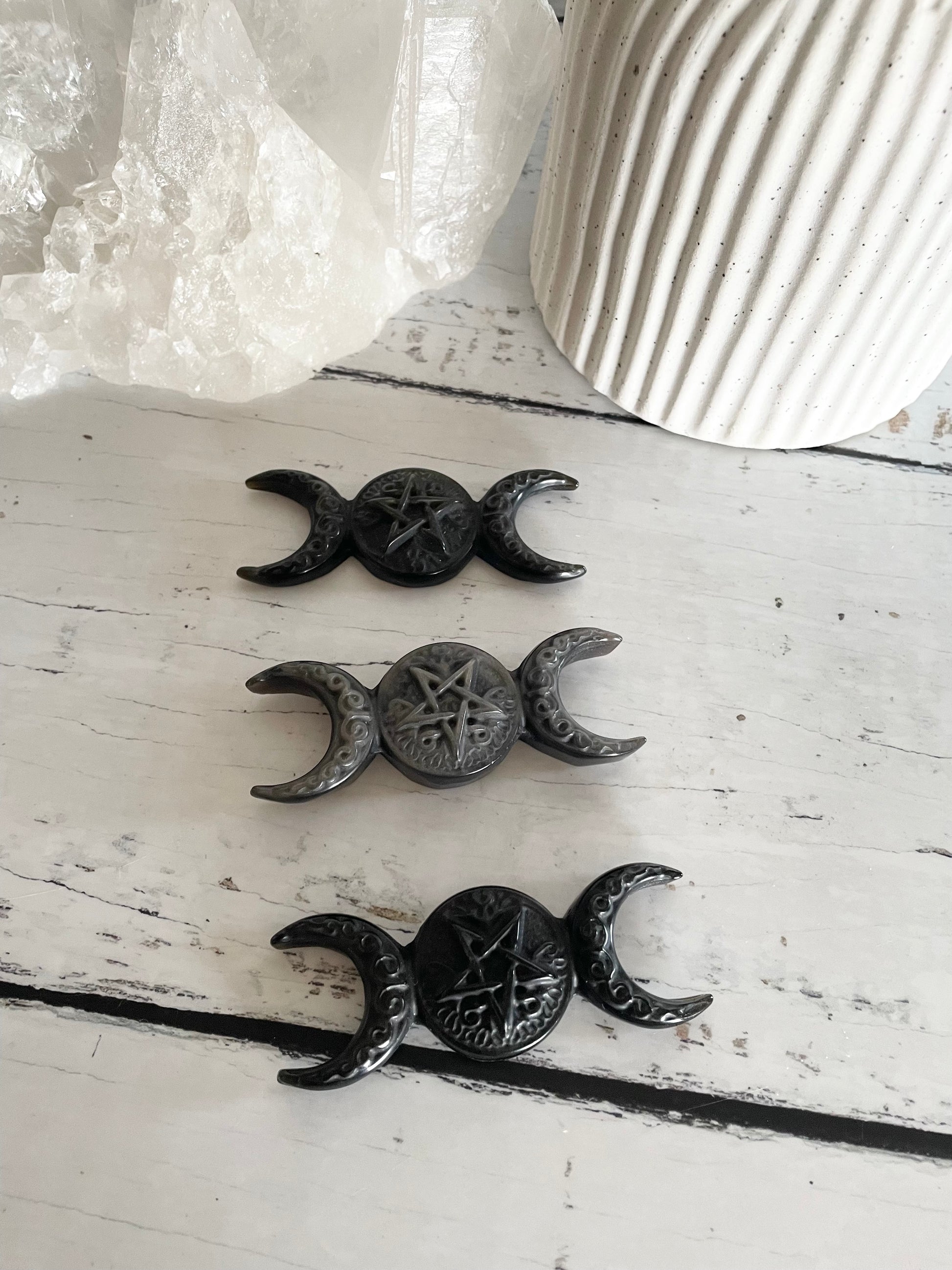 You will receive one triple moon carving chosen intuitively for you, each is uniquely beautiful