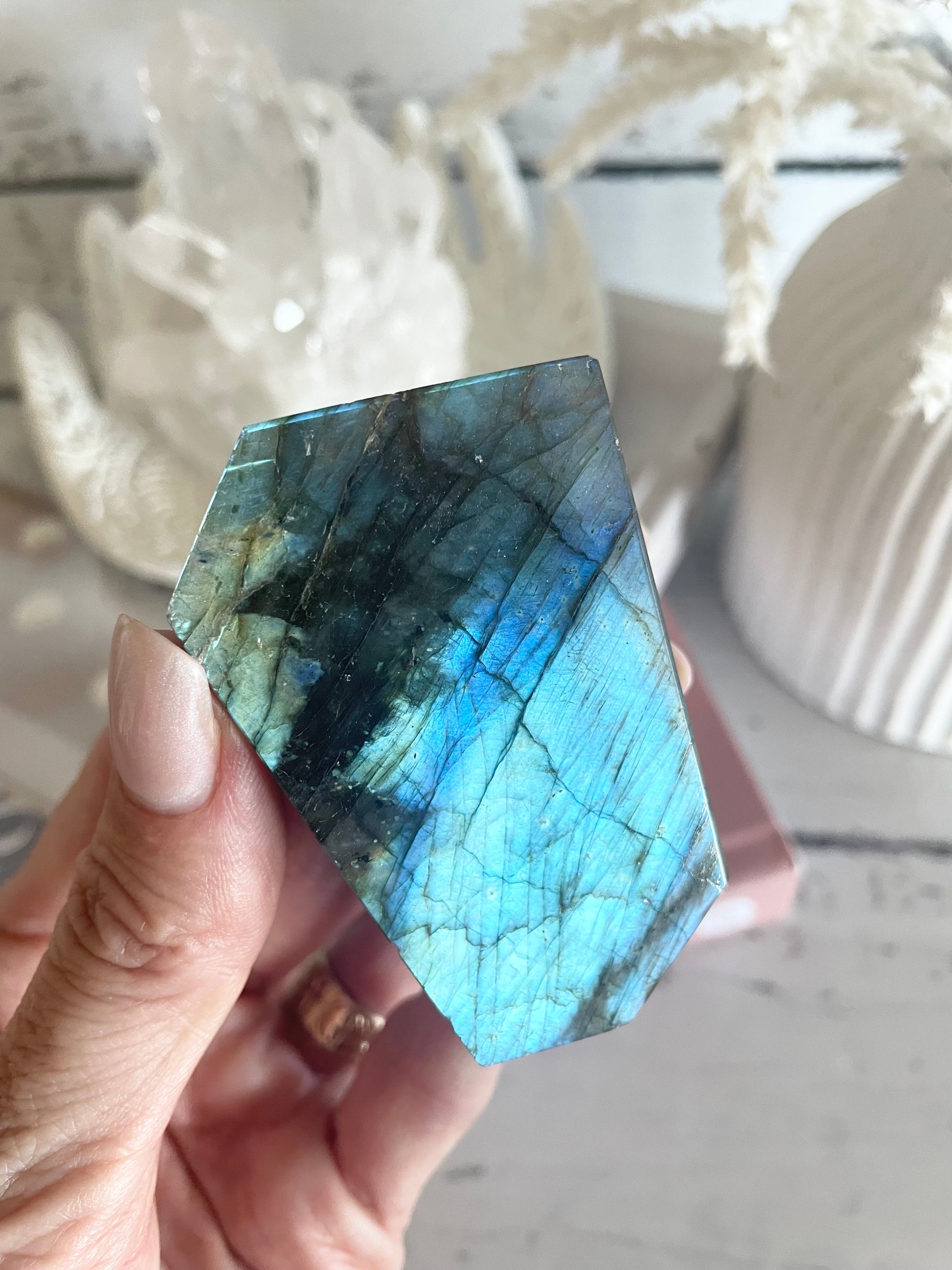 Please note we have had selected these pieces and they are as perfect t as a natural crystal gets being labradorite. Minor surface flaws, dents, scratches are a characteristic and these are shown in photos. If you crave perfect… perhaps it’s not for you!
