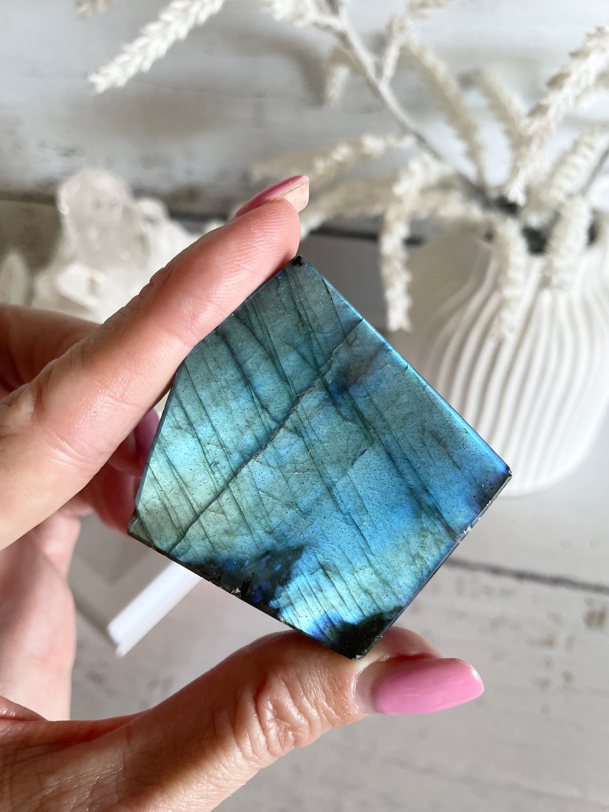 Please note we have had selected these pieces and they are as perfect t as a natural crystal gets being labradorite. Minor surface flaws, dents, scratches are a characteristic and these are shown in photos. If you crave perfect… perhaps it’s not for you!