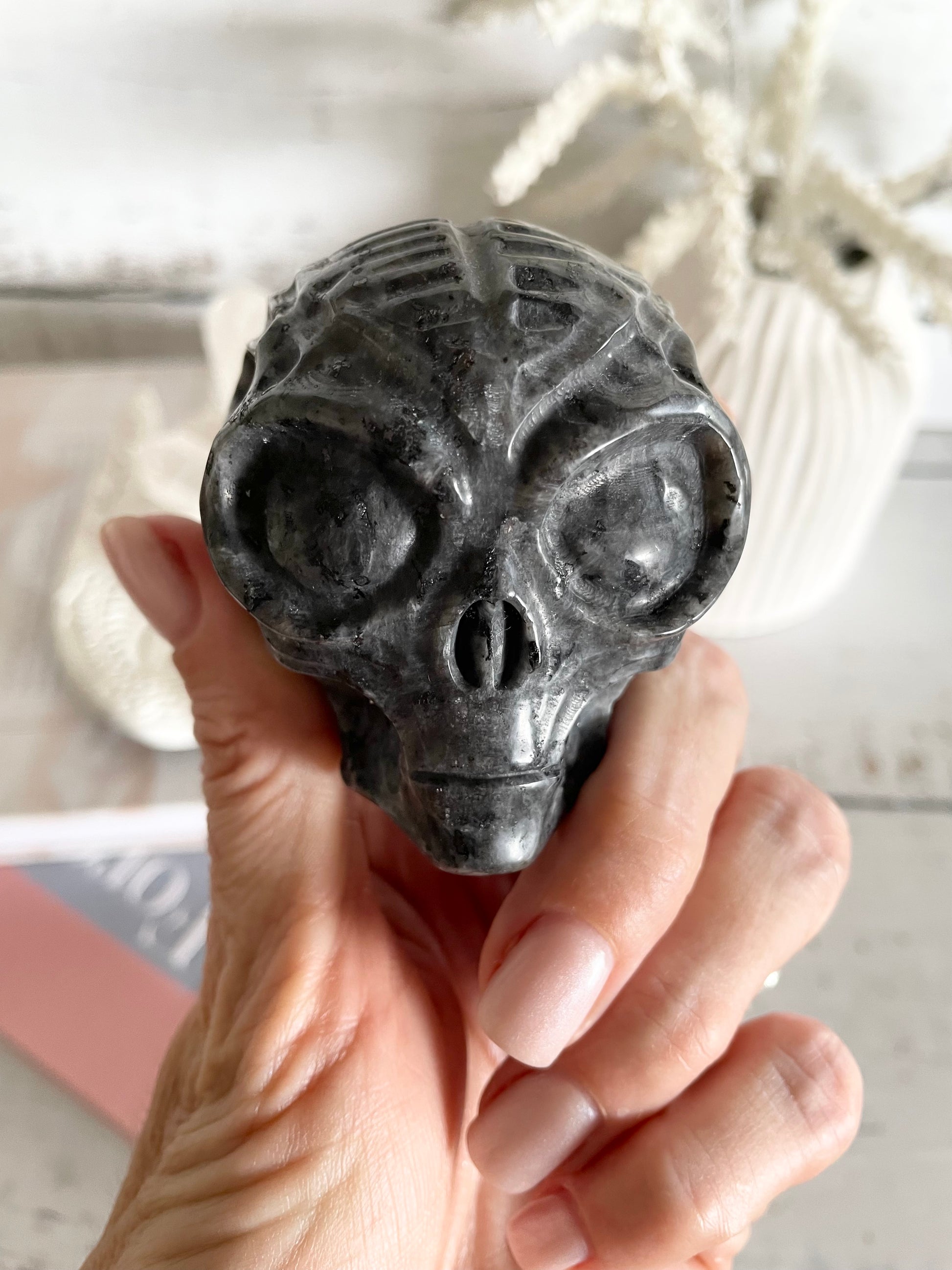 To work with your skull it’s important to get to know them. I recommend for at least a week you hold your alien skull daily to merge energies. Once you are both tuned into each other’s frequencies you can commence spiritual work like meditation, astral travel or dream recall…