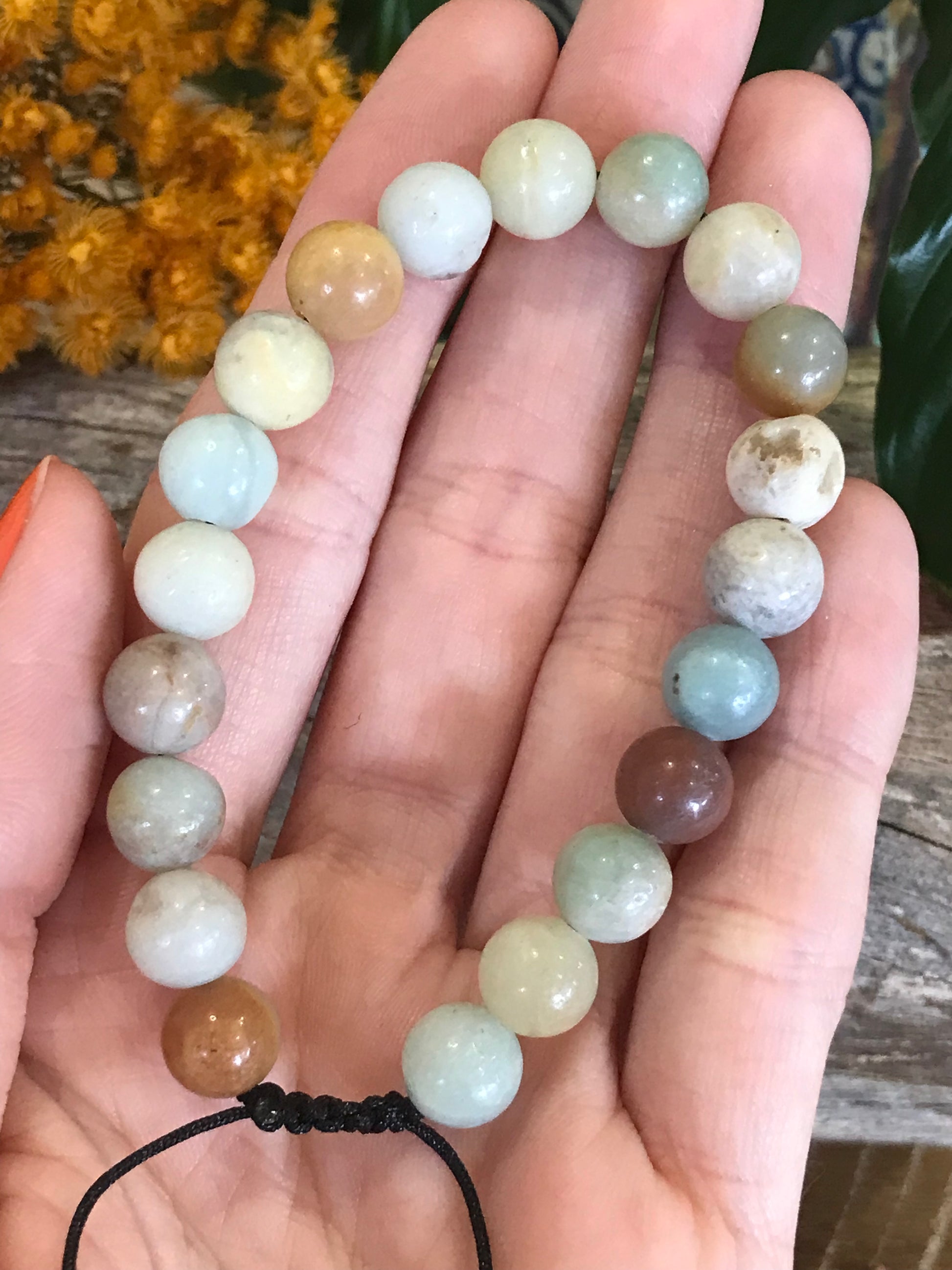 Adjustable Macrame Bracelet ~ Mixed Amazonite