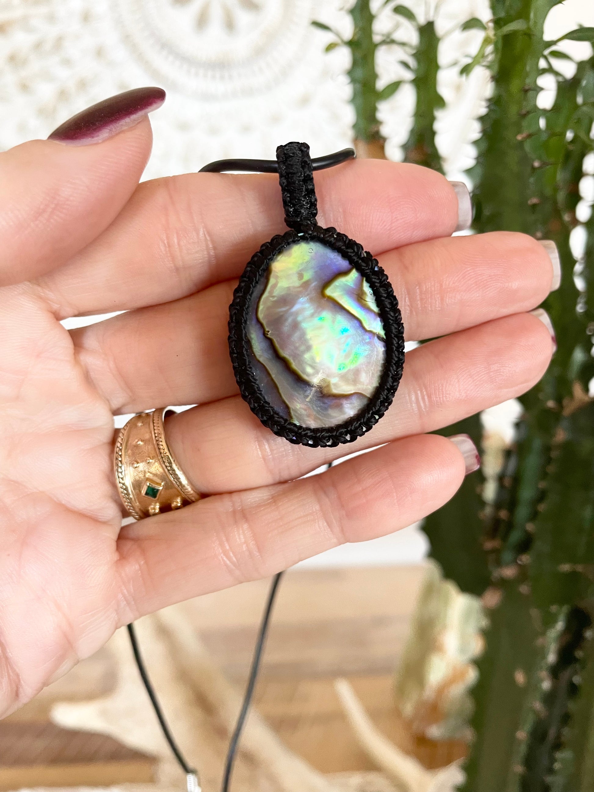 Macrame Pendant ~ Abalone