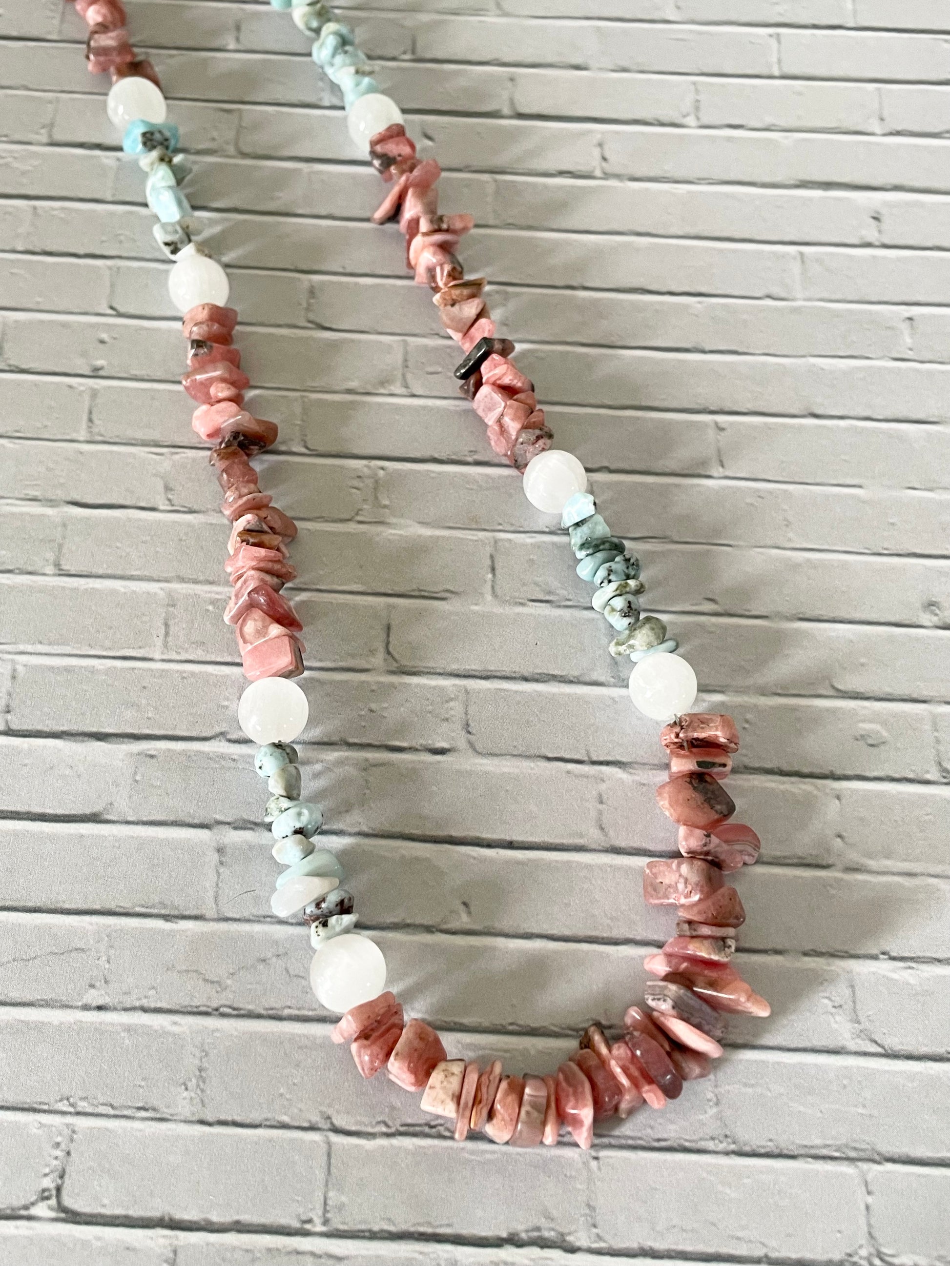 Featuring blends of freshwater pearls, pink opals, herkimer diamonds, larimar, selenite, blue lace agate, jades and jaspers!