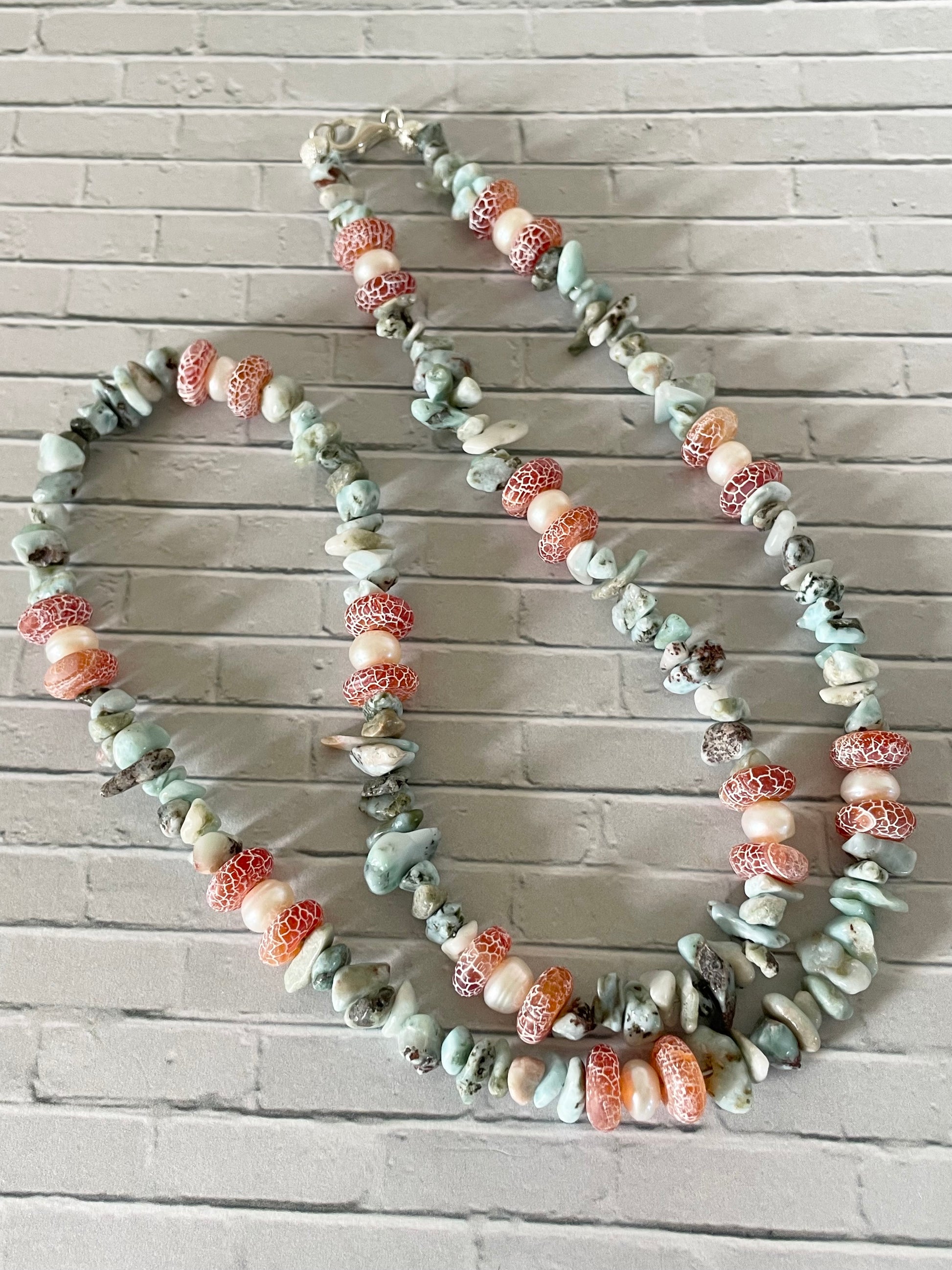 Featuring blends of freshwater pearls, pink opals, herkimer diamonds, larimar, selenite, blue lace agate, jades and jaspers!