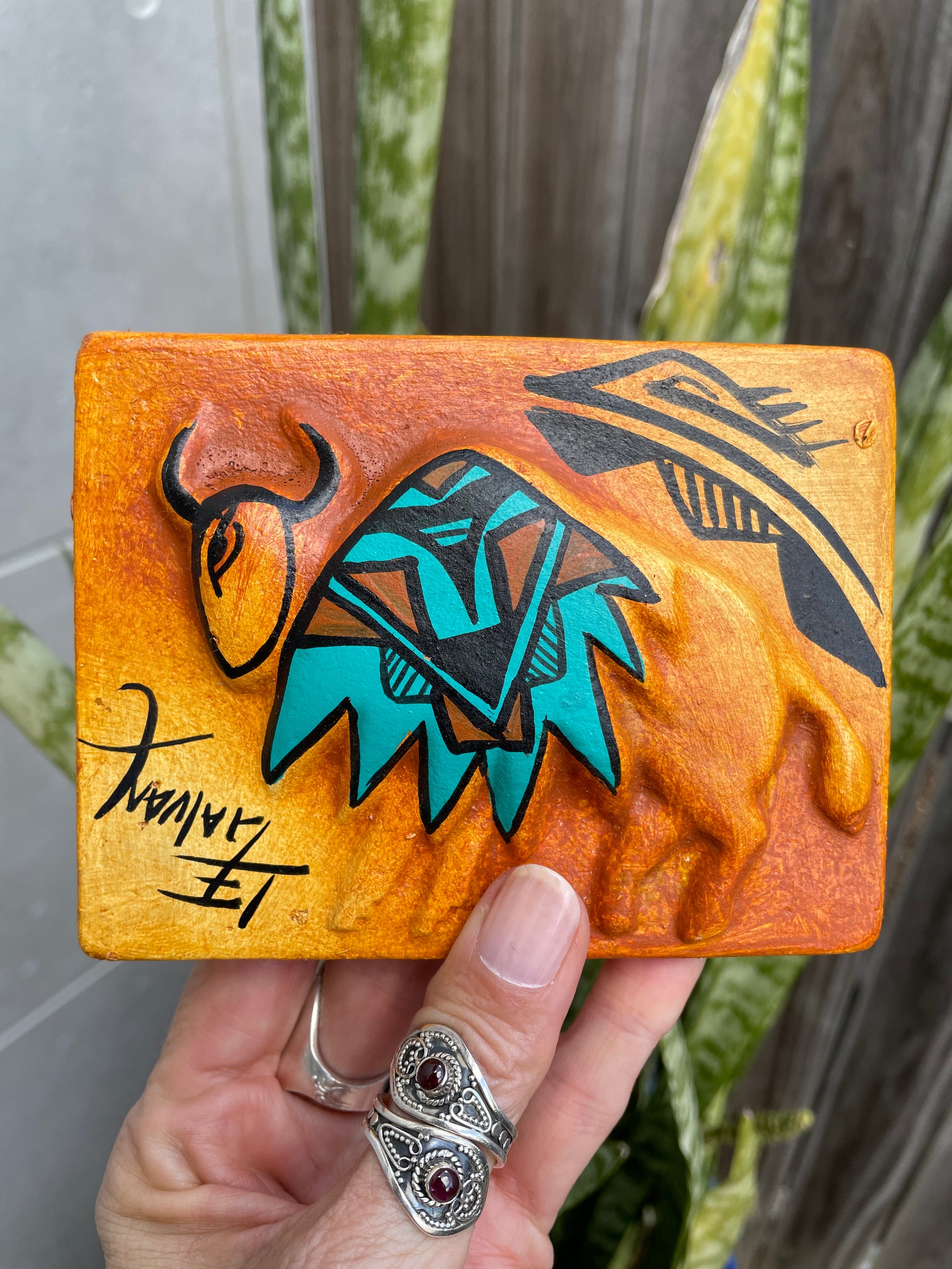Navajo Pottery Plaque & Stand ~ Sacred Buffalo