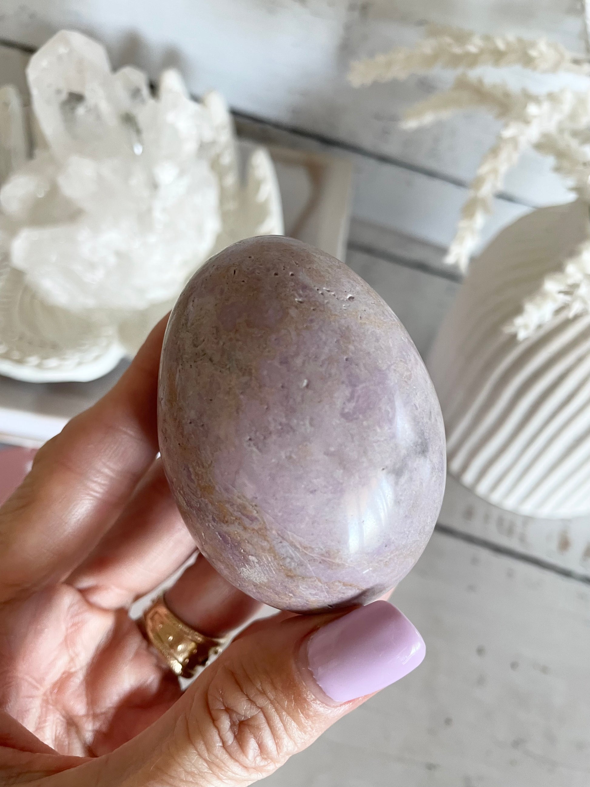 This soothing pinky/lilac Stone is a gentle vibration and opens our Heart for love and understanding