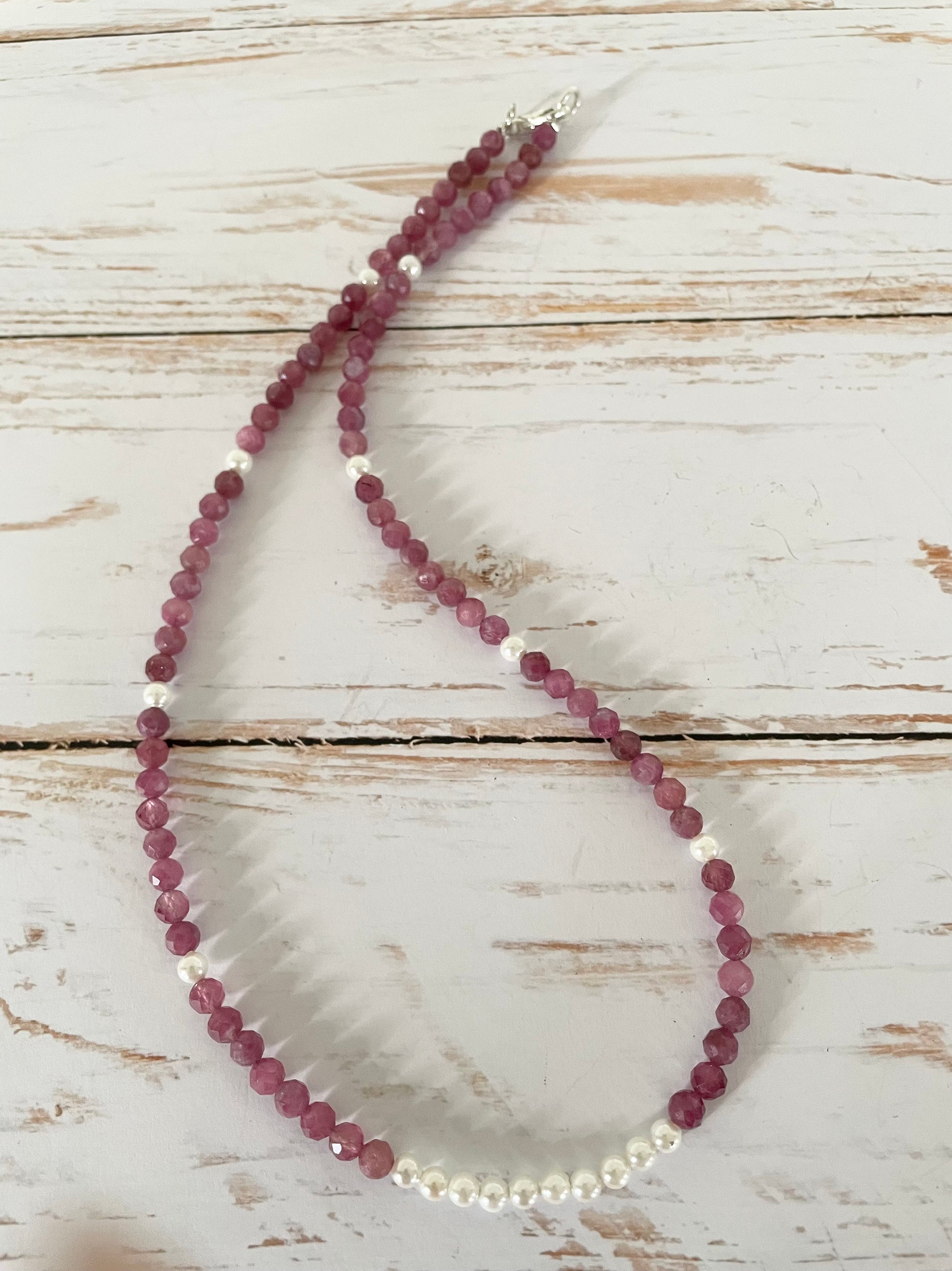 Pink Tourmaline & Pearl Faceted Necklace - Made by Wayne