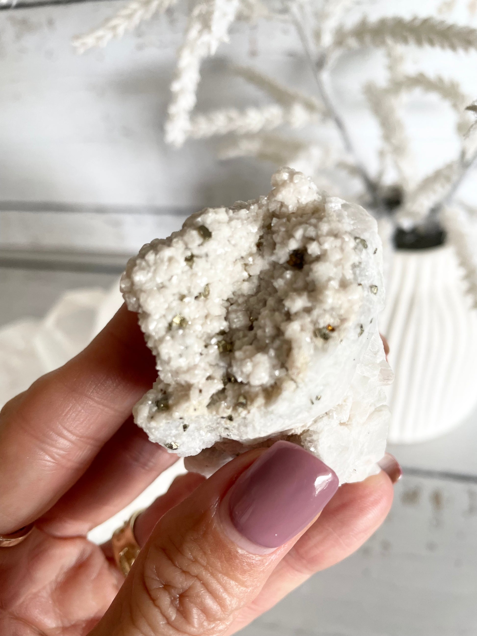 Pyrite is a protective energy and shielding stone. Carry a piece to reflect harm and danger away from your aura or keep a piece in your home surrounds. Useful if you are travelling away from home