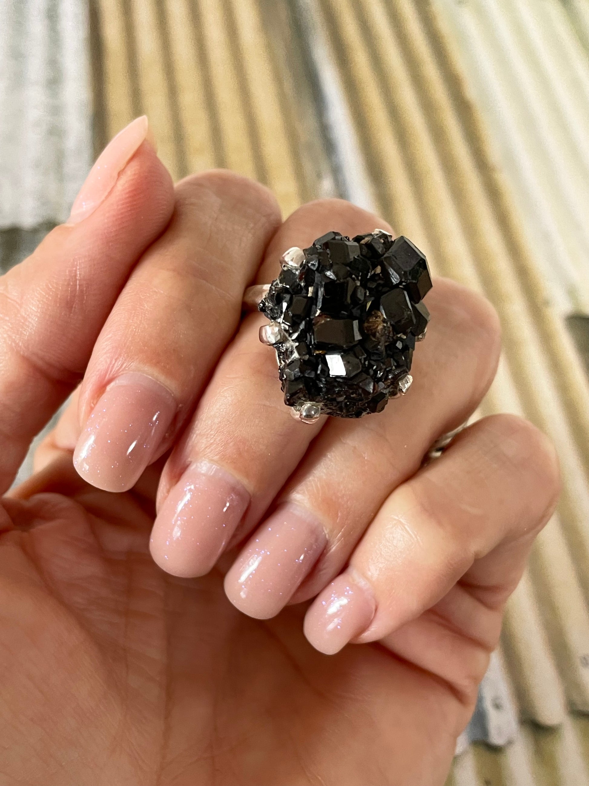 Raw Garnet hammered Ring - size 6.5-10 adjustable