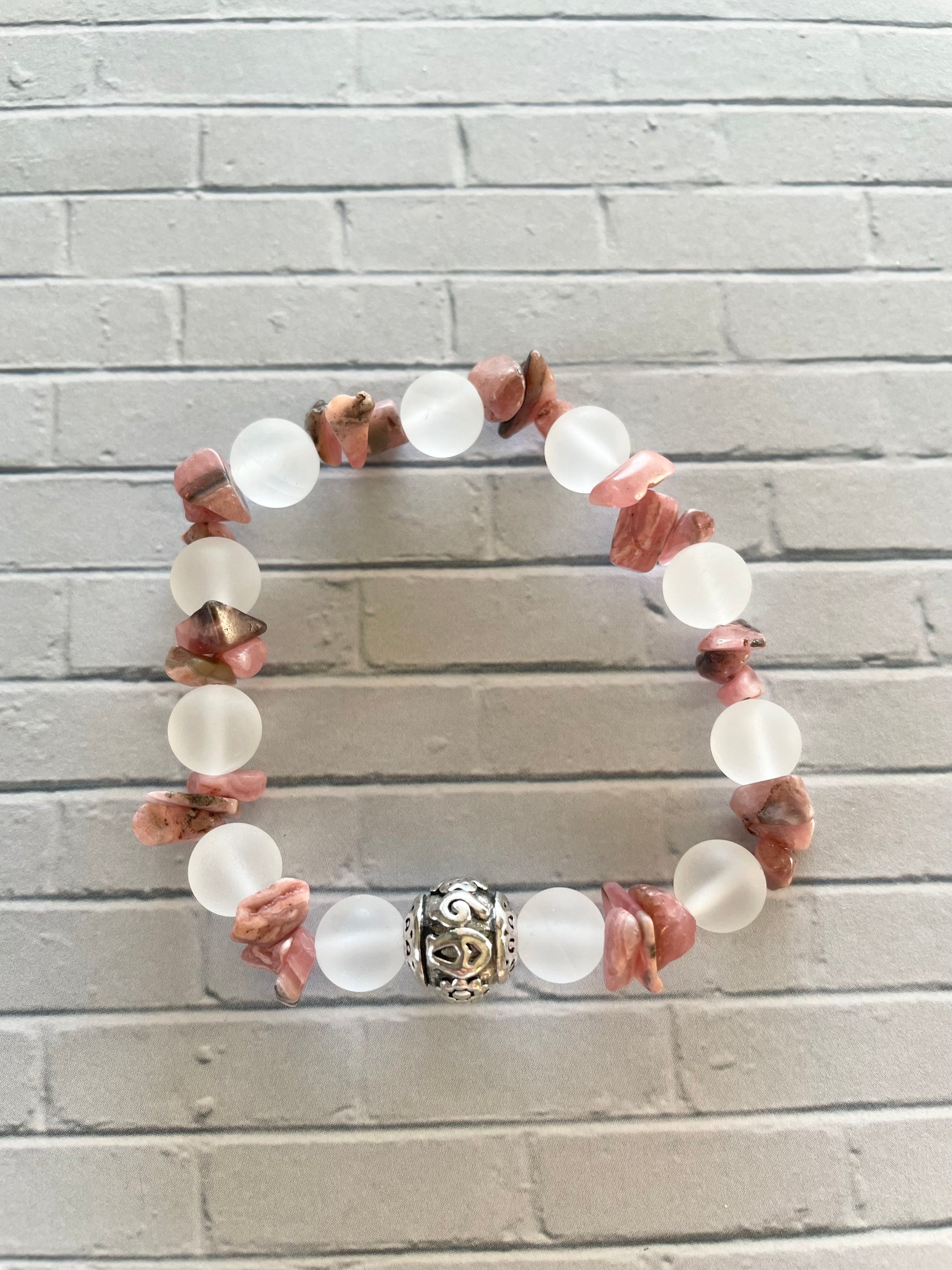 Rhodochrosite & Frosted Clear Quartz gemstone Bracelet