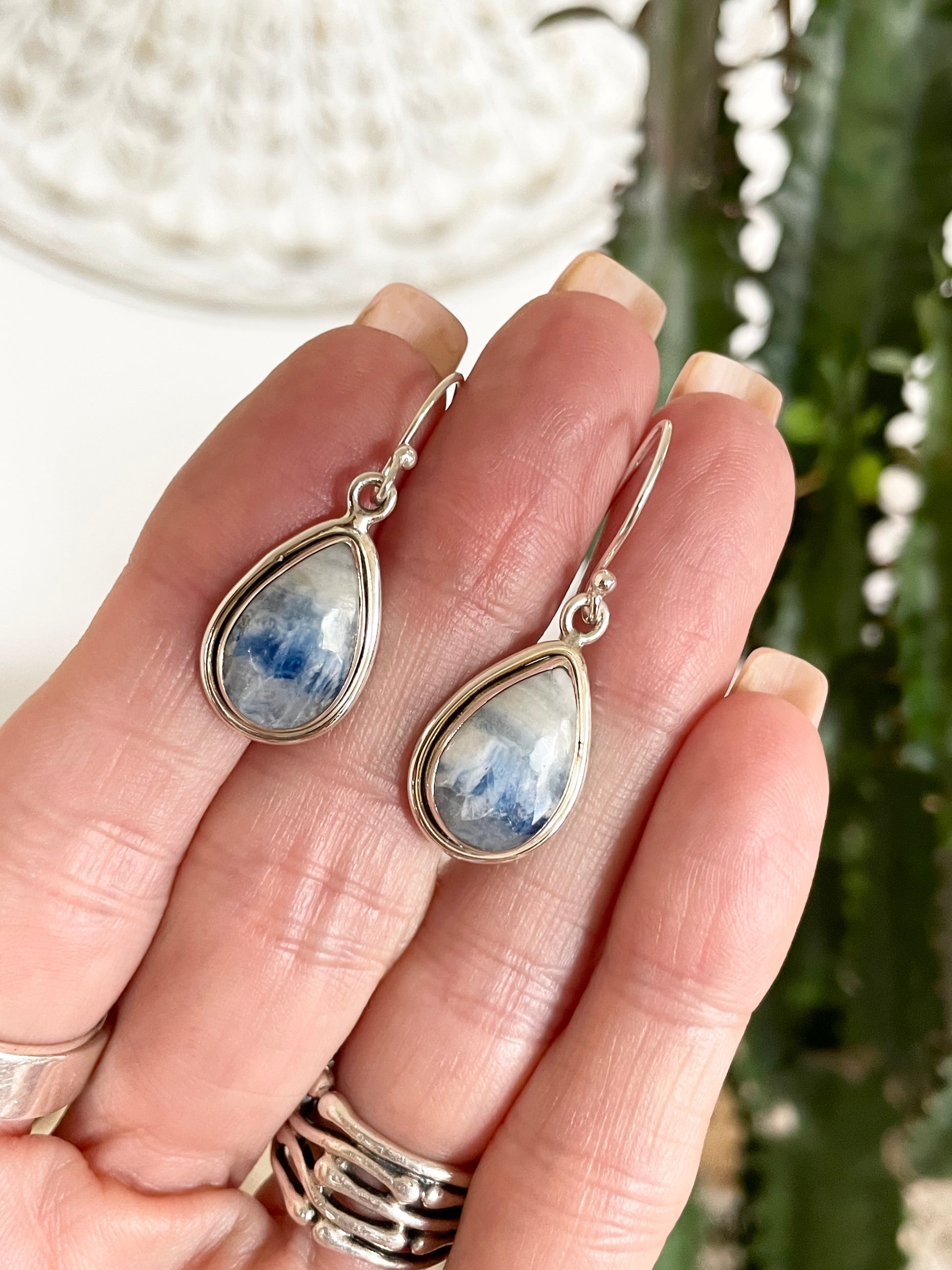 Blue Scheelite is a superstar, originating from Turkey and flaunting her unique combo of blue Calcite and Dolomite. It's like a spiritual party in your hands or ears, with striking banding patterns getting the metaphysical vibes going.