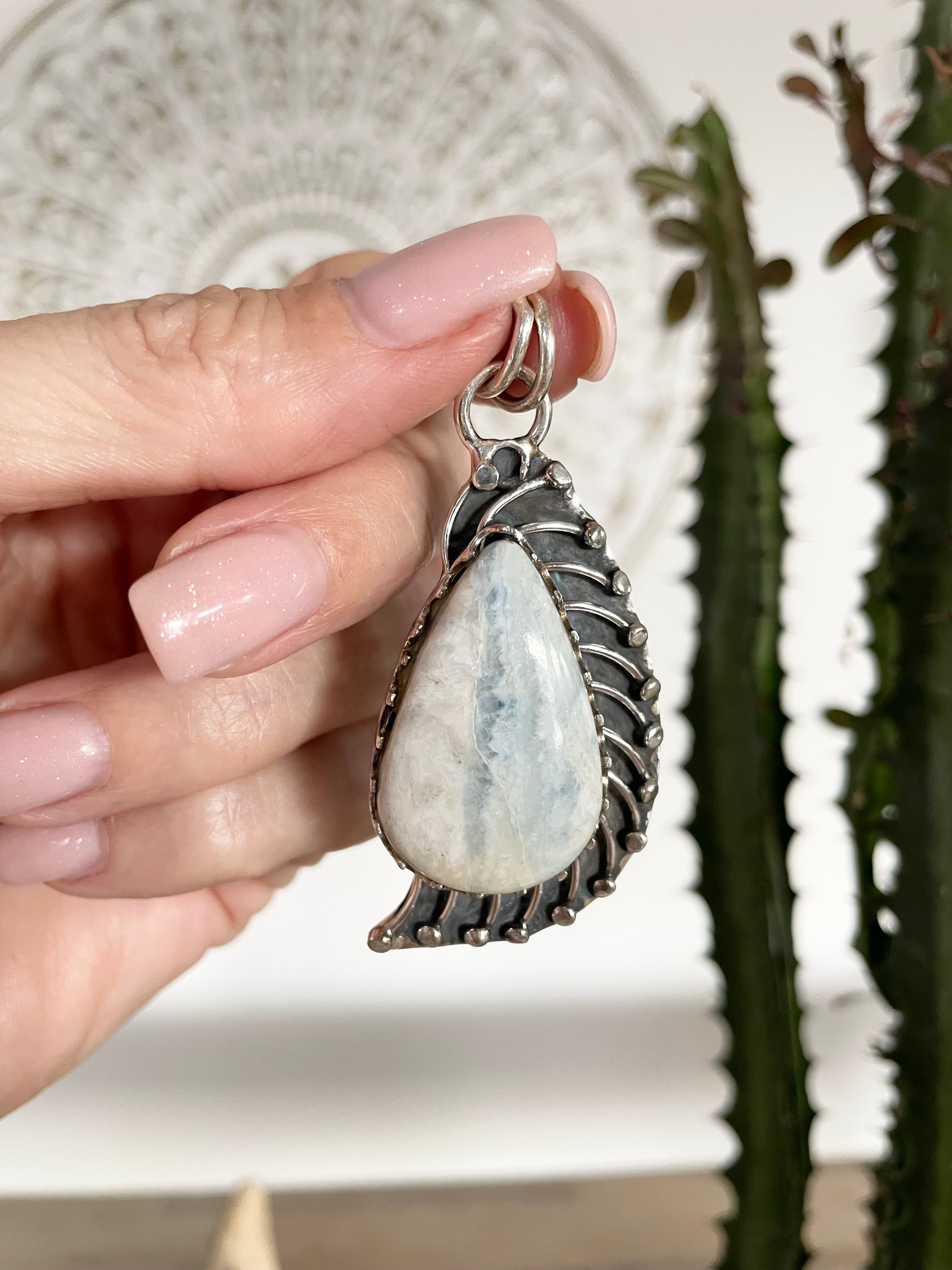 Blue Scheelite is a superstar, originating from Turkey and flaunting her unique combo of blue Calcite and Dolomite. It's like a spiritual party in your hands or ears, with striking banding patterns getting the metaphysical vibes going.