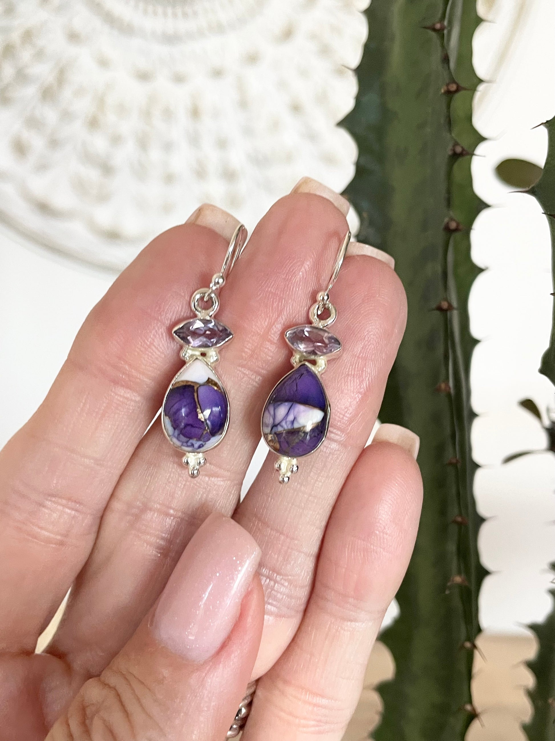 Violet Dahlia Kingman Turquoise/Amethyst Dangles