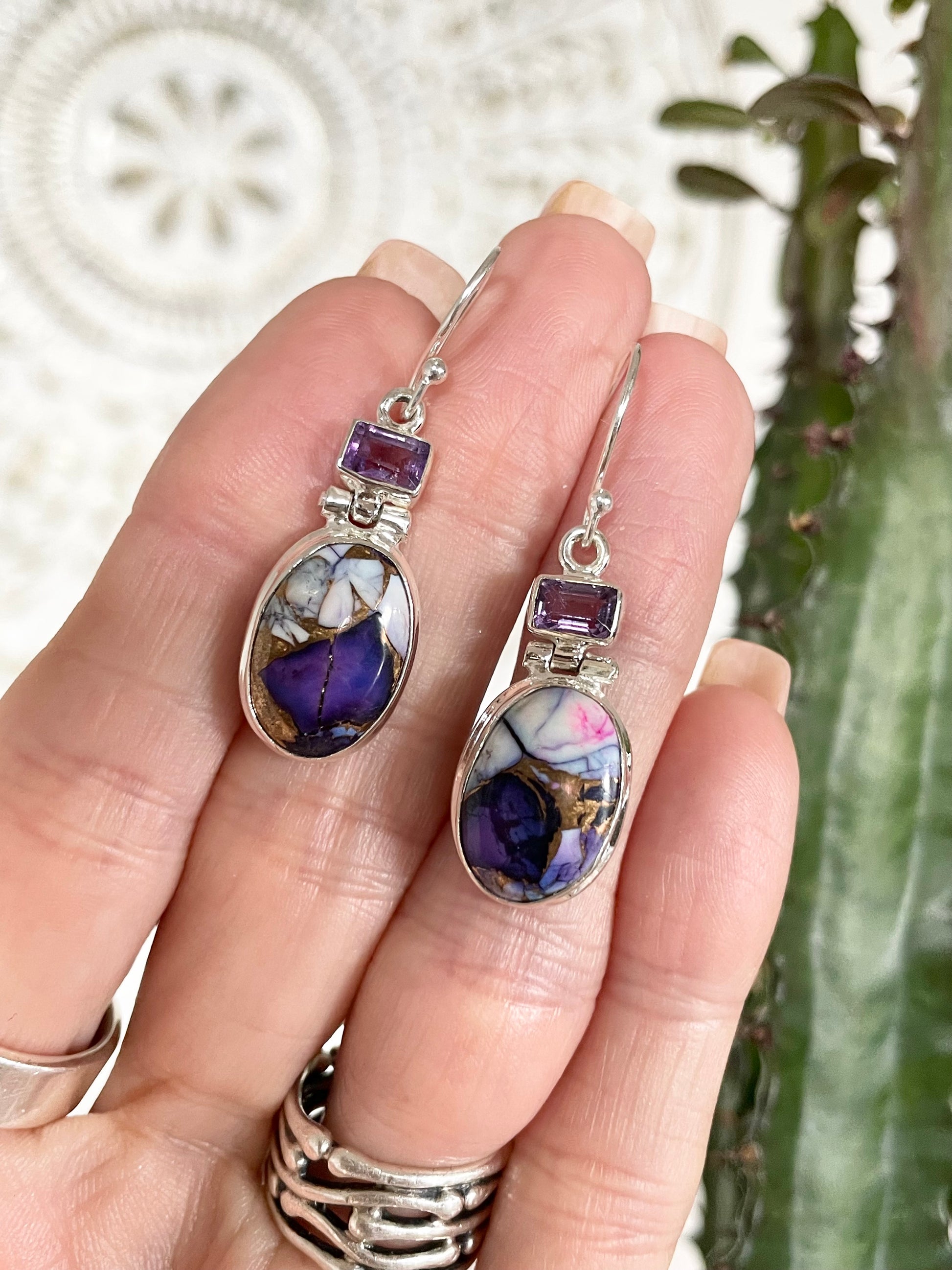 Violet Dahlia Turquoise & Amethyst Dangles
